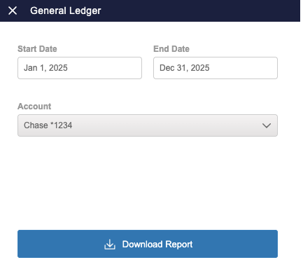In addition to viewing the GL directly in Floorzap, it can also be exported. When exporting the GL, there is an option to export a single account or all accounts (i.e. the entire GL).