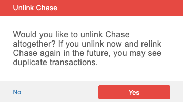 Unlinking is not recommended as a troubleshooting step, unless you no longer wish to track the account or are instructed to do so by support. Unlinking and re-adding a financial institution can cause transactions to be duplicated. If you’re experiencing an issue, please contact Floorzap for help before making changes.