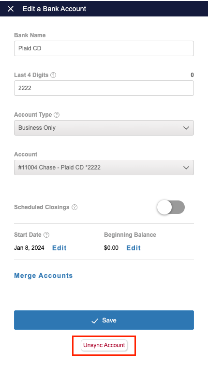 Yes. If there is a bank account or credit card you no longer want to track (e.g., you’ve closed the account or no longer use it for business), you can unsync it:
