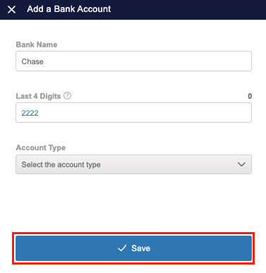 - Enter the Account Name and Mask (the last 4 digits of the account)