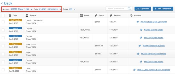 - You’ll be directed to the GL with a filter applied for that specific GL account and timeframe