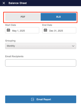 - Select the 'Grouping' field to create a comparative report (e.g. monthly, quarterly, yearly)