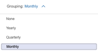 Using the 'Grouping' filter allows you to compare your data across different periods. Simply select one of the filters to customize the period that is being compared.
