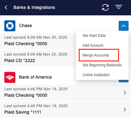 Since these accounts represent the same real-world account, you can merge them to streamline your records and keep your General Ledger, Chart of Accounts, and Balance Sheet accurate.