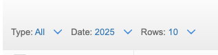 The Rows filter allows you to choose how many rows are displayed on each page. You can select from default values between 5 and 50.