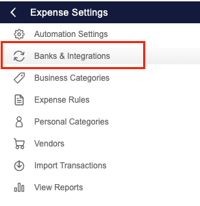 - Select ‘Banks & Integrations’