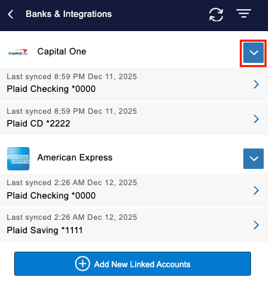 - Navigate to the Banks & Integrations screen