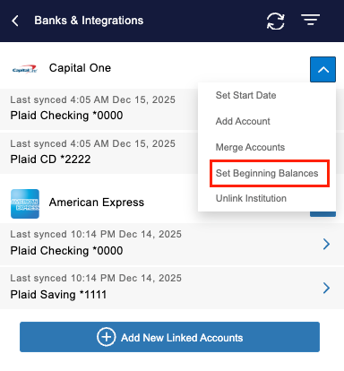 Can I set Beginning Balances for linked bank accounts?