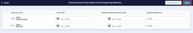 While you can set the Start Date for banks, you can also set the Beginning Balances for each individual linked account. To do so: