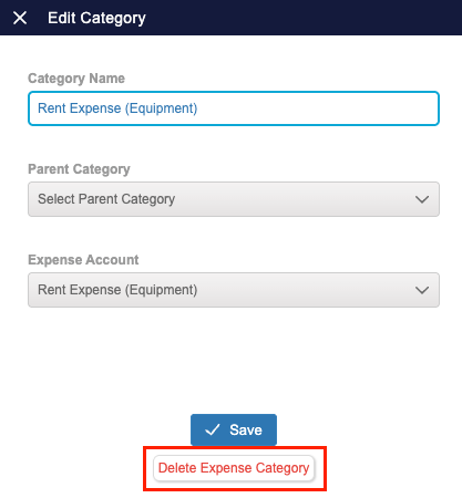 - Select the category that you wish to delete and click 'Delete Expense Category'