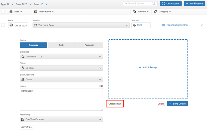 Expense Rules help you further automate your income tracking by automatically tagging certain deposits as they pull in from your linked accounts. This removes the need for you to tag those transactions manually, saving you time and ensuring all of your expenses are accounted for.