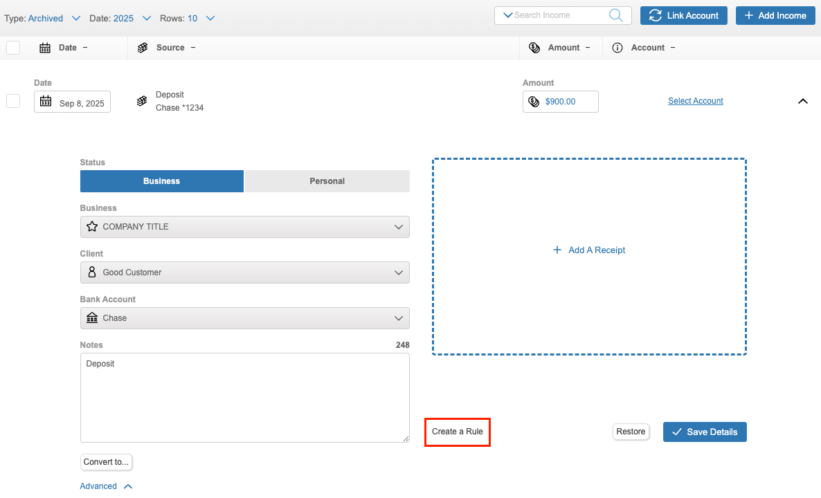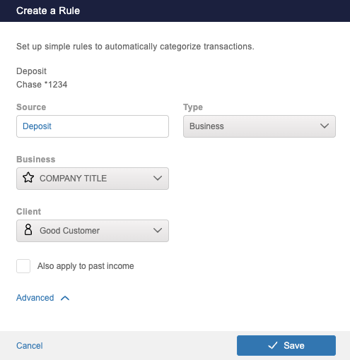 - Choose the income category that you want transactions from that vendor to be tagged to