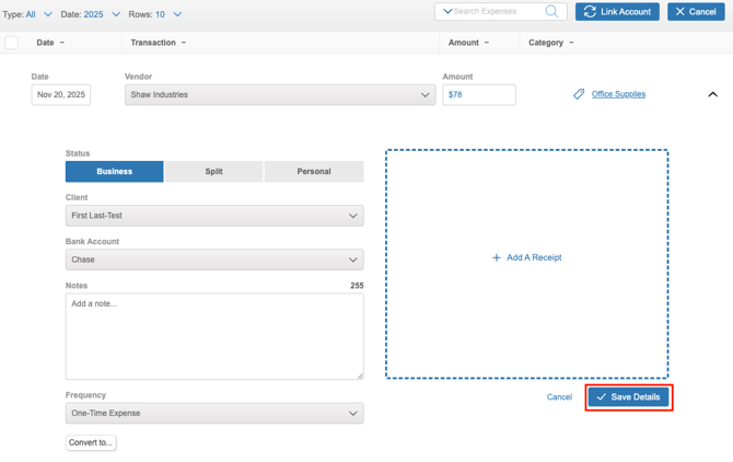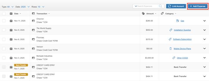 - Click the ‘+Add Expense’ or ‘+Add Income’ button